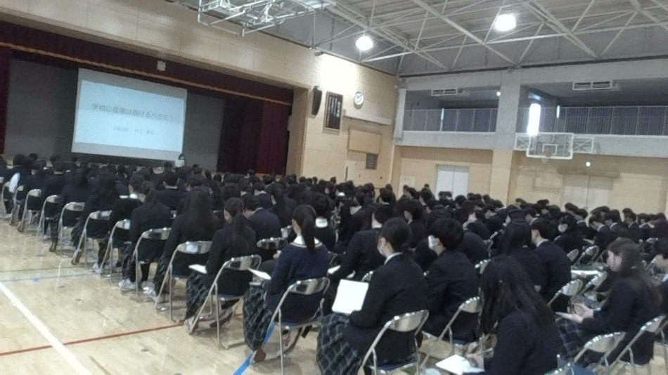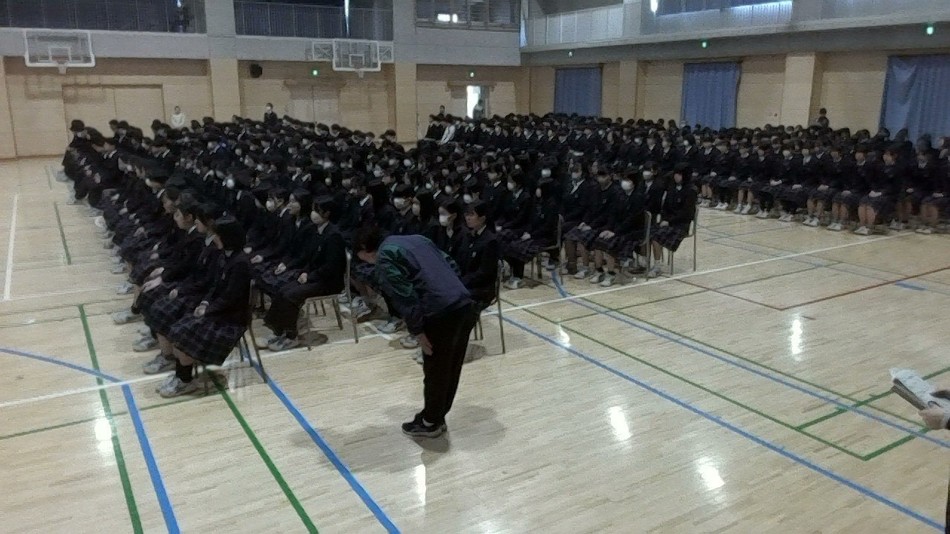 体育館にて、今年度初めての学年集会を行いました。