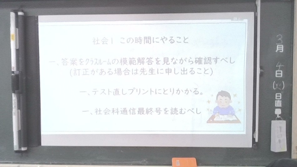 本日、学年末テストが終了しました。