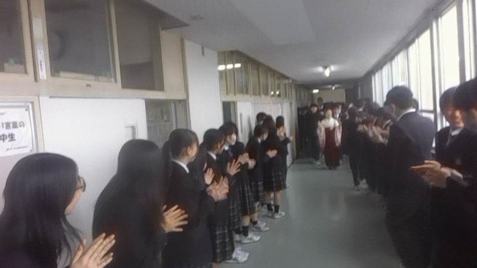本日、全校生徒が集まって、3年生ありがとうキャンペーンとして、「生徒による生徒のための卒業式」を行いました。