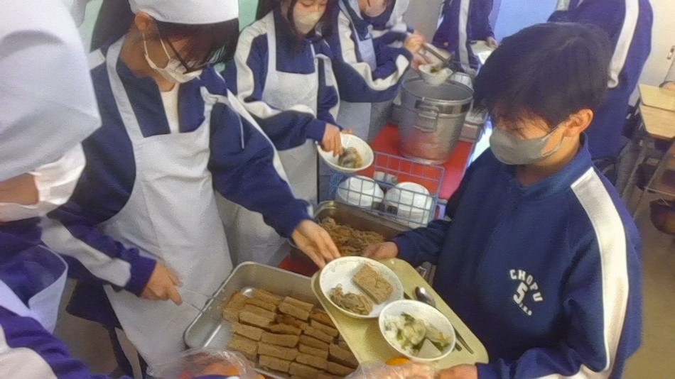 1年生にとって中学校初めての給食