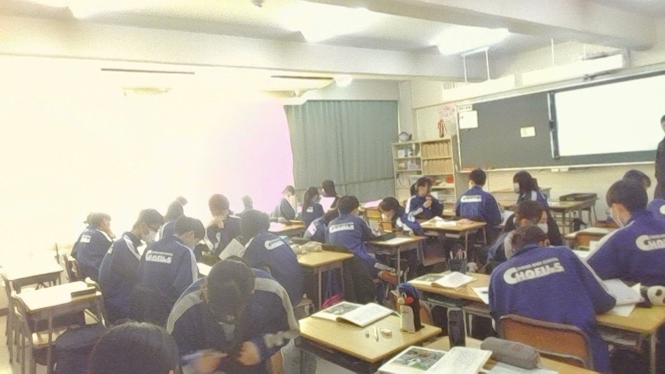 1時間目に、生徒総会に向けての議案書討議が行われました。