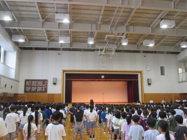 久しぶりにみんなが集まった集会「1年生を迎える会」。