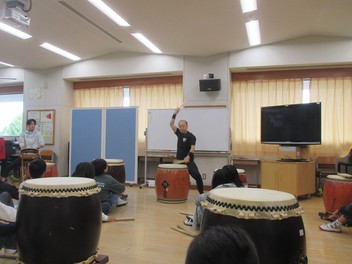 6年生はゲストティーチャーをお招きし、音楽発表会で演じる和太鼓の学習を行いました。