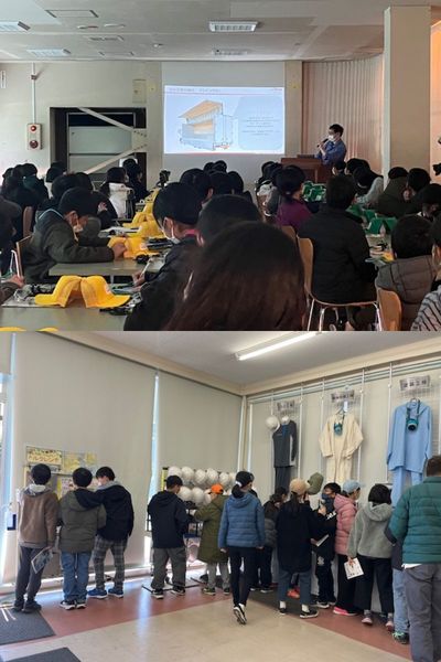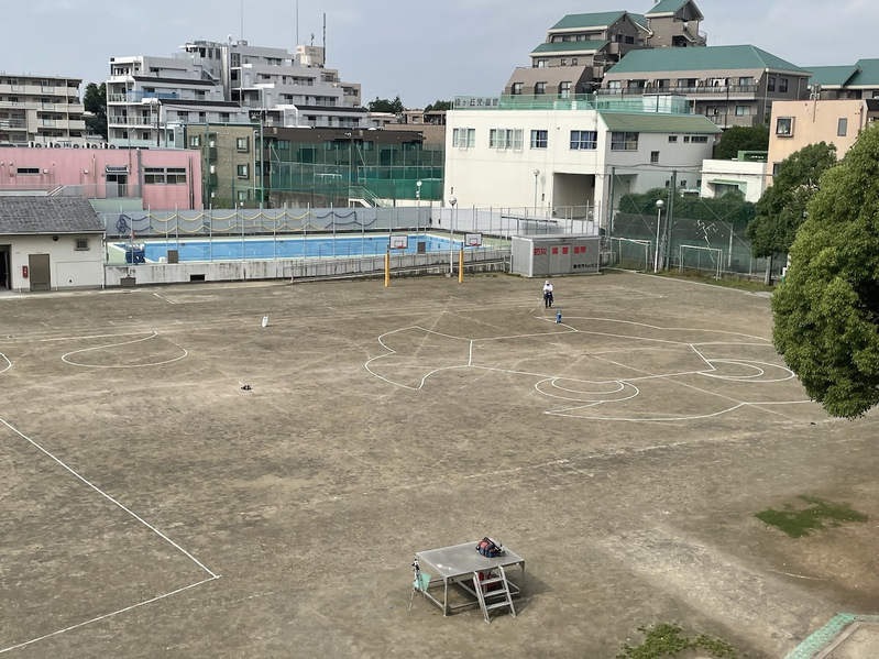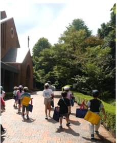 〈本校 南門からの通路脇花壇とジンダイアケボノのまわりにて〉