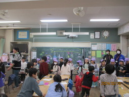 新年度に入学してくる園児が、来校しました。1年生が迎え入れ学校の様子を紹介しました。
