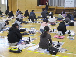 新しい年が明け、3学期毎年恒例の席書会を行いました。中・高学年の子どもたちは、体育館で学年一斉に筆をとっていました。