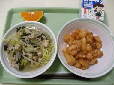 今日の献立 ・味噌ラーメン ・揚げワンタン ・中華海鮮サラダ ・牛乳 |