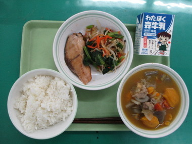 今日の献立 ・ごはん ・スープカレー ・鮭のチャンチャン焼き ・牛乳 |