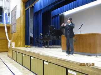 本日は、1 年生はスキー教室に出かけているため、2, 3 年生のみの始業式となりました。式では、校歌を歌い、校長先生からのお話を聞きました。今学期は学年最後のしめくくりです。自分の成長を振り返る時期であり、1 年生は 2 年生の, 2 年生は 3 年生の 0 学期と呼ばれる「準備」をする時期でもあります。また、3 年生は今学期をすぎれば、義務教育がおわり、次の新たなステージのスタート地点に立つことになります。悔いの残らない 3 学期をおくりましょう。