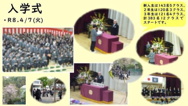 式中では、新入生143名に対して、校長先生から「頑張るときはいつも今(仮)」とメッセージを送られました。いよいよ四中生としての生活がスタートです。