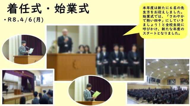 始業式では、校長先生から今年度も引き続き「“さわやかで熱い四中”、そして明日も来たくなるような学校をみんなでつくっていきましょう!」と呼びかけられ、新年度のスタートを切りました。