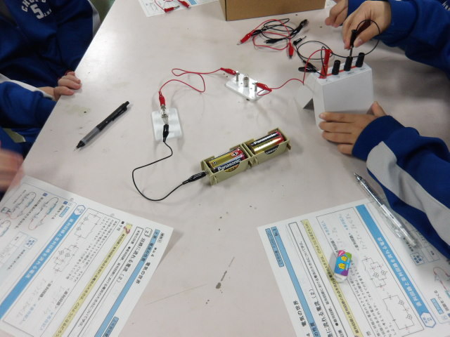 2年生の理科の授業では、直列回路と並列回路に流れる電流の大きさについて調べる実験を行いました。