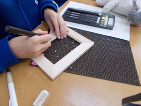 本時の目標は「木彫りの写真立てを制作する」です。