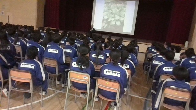 本日、総合的な学習の時間で「食育」をテーマに講演を行いました。