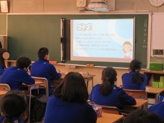 保健給食委員会が作成した感染症対策の啓発動画が、朝の六中タイムで全校生徒に上映されました。