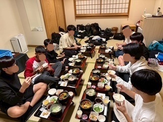宿では部屋食を楽しみ、自由時間はクラスを越えての交流や、部屋で野球観戦をする生徒も見られました。