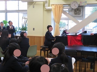 ストリートピアノDAY 2025年12月17日(水) 昼休みにグランドピアノを解放し、自由に弾けるイベントを実施しました。 100人近くの生徒が集まる中、ディズニーの曲を披露したり、クリスマスにちなんだ曲を参加者全員で歌ったりしました。中には引き語りで美声を響かせた生徒もおり、一体感のある楽しい会となりました。