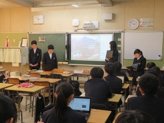 ハンセン病学習発表会(3年) 2025年12月19日(金) ハンセン病について調べたことをクラス内で発表しました。 ハンセン病について一人ひとつテーマを決めて、生活班ごとに一つのスライドにまとめ、クラス内で発表をしました。調べ学習をする中で知り得た様々な情報を共有することで、より深くこの問題の大きさを認識し、人権問題として意識を高めることができました。