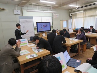 発表会の見どころの一つとして、ジュニア研修部の代表メンバー7名が講師の先生とステージ上でパネルディスカッションを行い、500人近い教職員を前に堂々と意見を発表していました。パネルディスカッション終了時は、会場から温かい大きな拍手が送られました。また、六中全教員による9つの分科会(対話ブース)も行われ、こちらも好評でした。