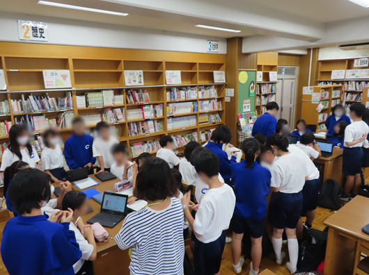 本探しを手伝ったり、図書室の先生とカウンターのお手伝いをしたり、