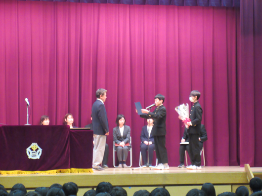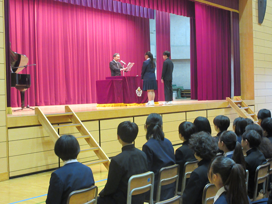 1年生、2年生の代表生徒に修了証を授与しました。
