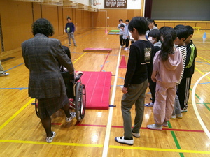 4年生が総合的な学習の時間に、車いす体験をしました。