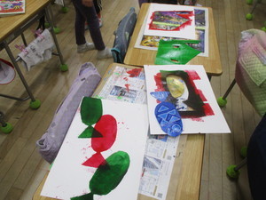 2年生 たのしくうつして 2026年1月23日 図工の授業で、版画にチャレンジしました。 まず、2学期に学習したカッターを使って、表したい形や模様をイメージしながら、「かた」や「はん」を作りました。 インクの付き具合を確かめたり、うつす位置を考えたりして一生懸命取り組んでいました。 色やはんの形を工夫しながら表現することができ、友達と協力しながら楽しんで活動することができました。