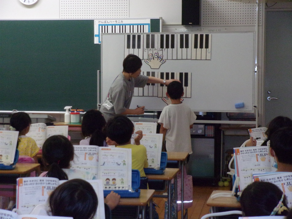 6年生はゲストティーチャーをお招きし、音楽発表会で演じる和太鼓の学習を行いました。