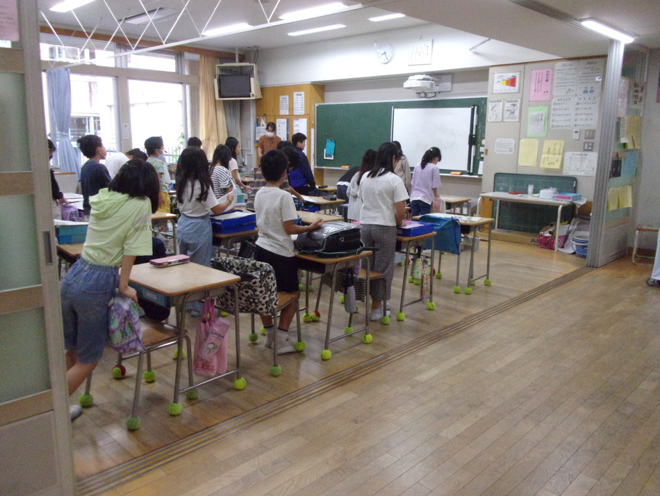 今日は休み時間に地震が発生したことを想定した避難訓練が行われました。