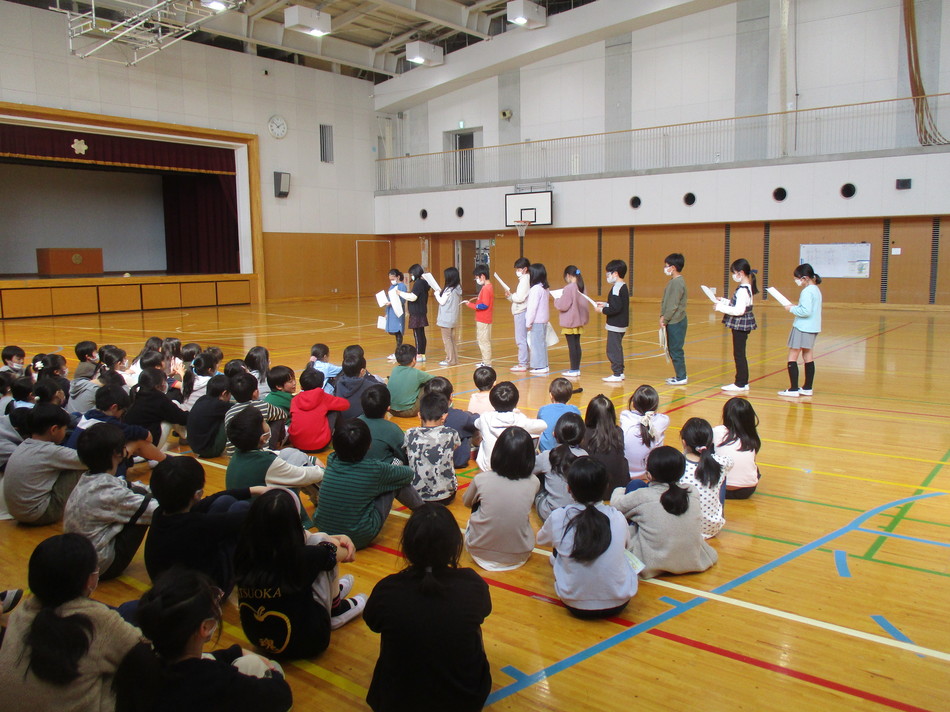 久しぶりにみんなが集まった集会「1年生を迎える会」。