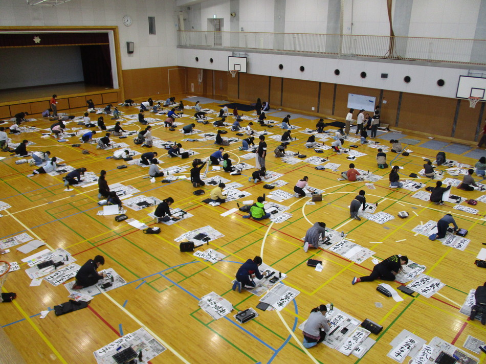 児童の下校後、スポーツフェスティバルのための会場設営が行われました。