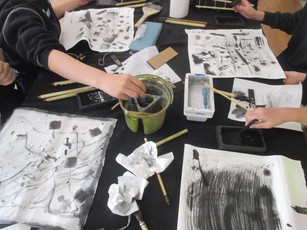 5年生は図工科の学習で墨アートの体験学習を行いました。