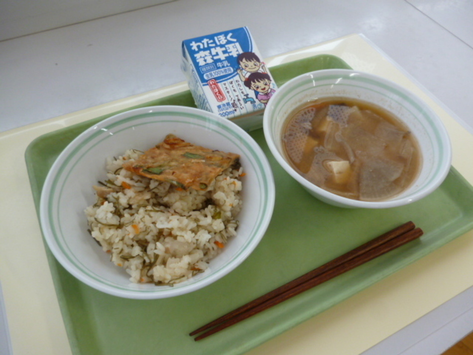 家庭科の調理実習では,炊飯と味噌汁作りを行いました。