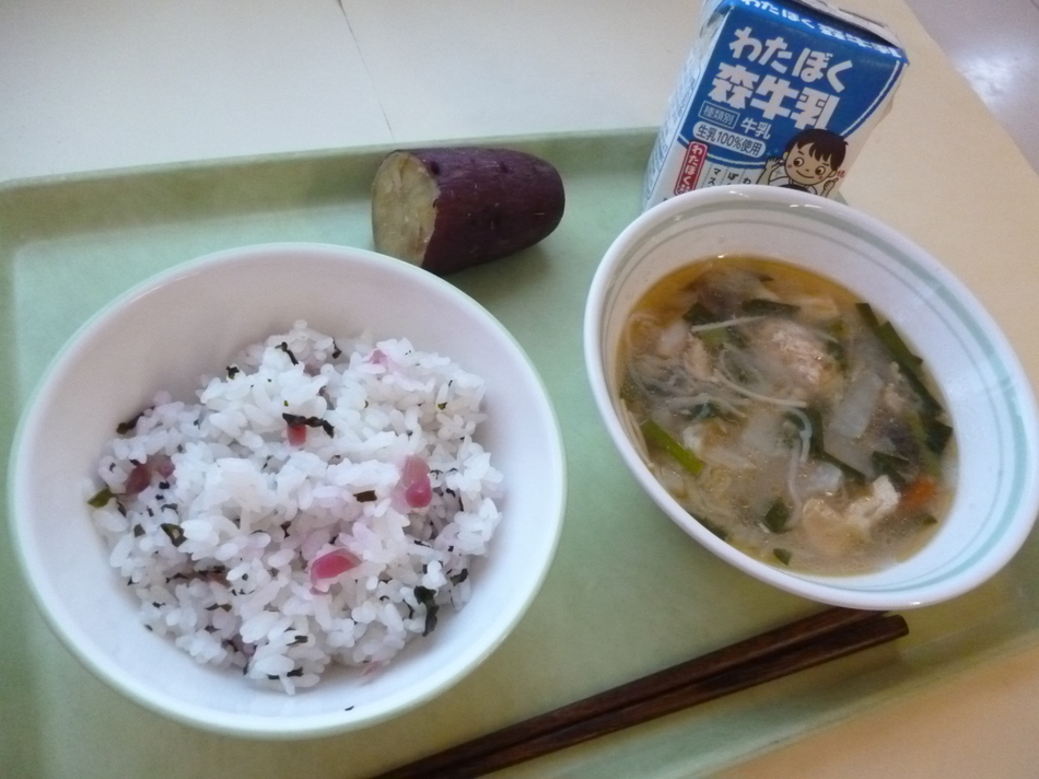 【献立】梅若ごはん・塩ちゃんこ鍋・ふかし芋・牛乳