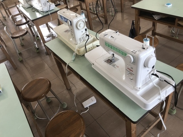 ミシンの使い方を確認しながら集中して布を縫っているところです。