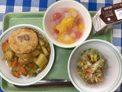 5月23日 カツカレーライス ガルバンゾーサラダ