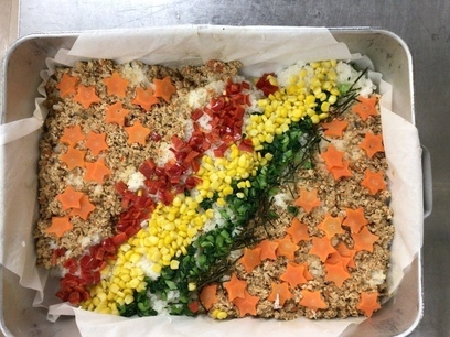 栄養士の鹿島先生と調理員さんたちの作品です!