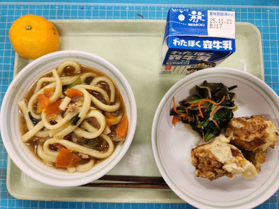11月18日(火)カレーうどん ポテトたこ揚げ