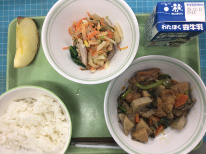 ごはん 治部煮 友禅あえ 果物(りんご)