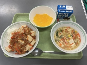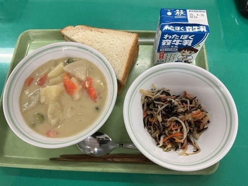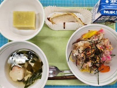 給食 2026年度 4月10日 ご飯、麻婆豆腐、卵とニラのスープ つぶつぶみかんゼリー 4月9日 さくらトースト、春野菜のクリームシチュー、切り干し大根の洋風サラダ 4月8日 待ちに待った令和8年度の給食が始まりました! (1年生は4月15日からになります。お楽しみに♪) 花見寿司 魚の変わり西京焼き 花麩のすまし汁 芋ようかん