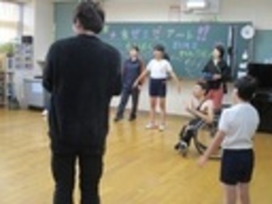また、かしわ学級では、「まぜこぜアートスクール」として障害があるアーティストの方が講師となり、体験型ワークショップを行いました。講師の先生はダンサーで、みんなで楽しく体を動かすことができました。