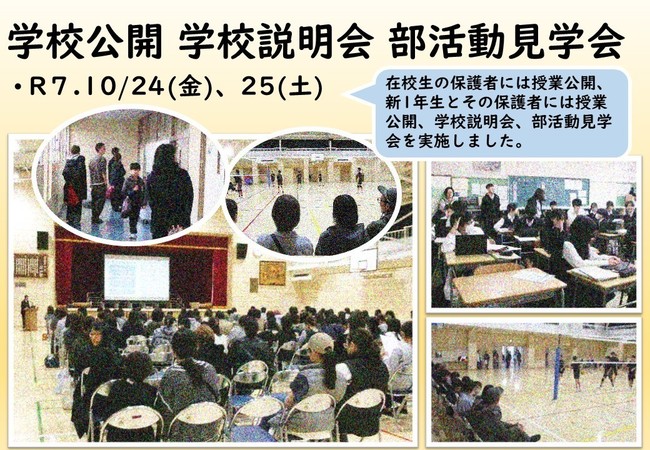特に土曜日は、あいにくの天気にもかかわらず、来年入学を予定している6年生も含め大変多くの方々に来校いただきました。生徒たちの日頃のようすをご覧いただき、ありがとうございました。