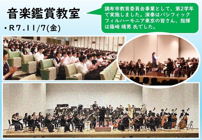 生の演奏を聴き、全身で音楽を感じることができました。カルメンやラデツキー行進曲では、生徒も指揮を振ったり、手拍子をしたりと会場が一体となって音楽を楽しみました。