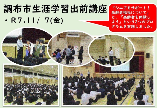「共に生きる~高齢者に優しい社会を目指して~」をテーマとして、総合的な学習の時間の人権・福祉で人権課題「高齢者」についての学習を行いました。市役所の担当の方を講師としてお招きして、講演、疑似体験を通して理解を深めました。