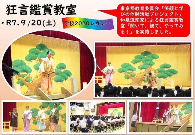 1年生の総合的な学習の時間で、狂言鑑賞教室を実施しました。これは、学校2020レガシー「日本人としての自覚と誇り」と関連しています。