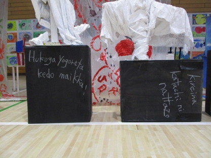 など、子どもたちのつぶやきがアート風のローマ字で表現されていました。