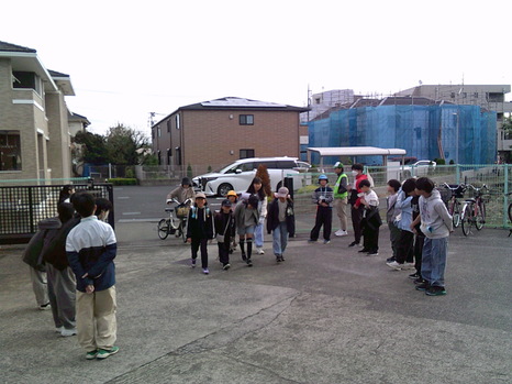 学校の周りの様子を見ながら、地域めぐりを行いました。