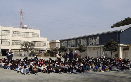 避難訓練 2026年 2月5日 掃除中に地震が起きたら… 今月は、掃除中に地震が起きた想定で訓練を実施しました。これまで訓練したときのように、自分の教室にいた児童もいましたが、階段や特別教室など自分の教室から離れた場所にいた児童も多くいました。 どうすれば自分で自分の身を守ることができるか考え、行動することが大事であることを再確認しました。教室から遠く離れた場所にいた6年生数名は、教室に戻らず校庭に避難し、その後、学級のみんなと合流することができていました。
