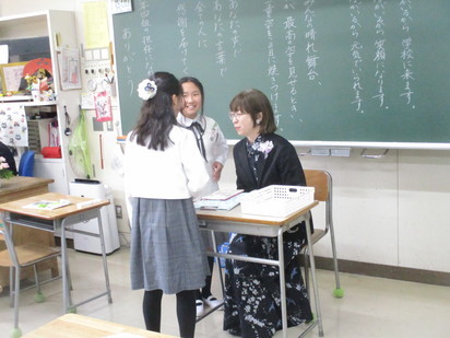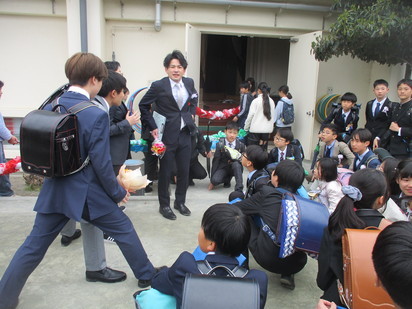 しあわせになあれ 2025年 3月 25日 次の旅へ 卒業式が行われました。朝は、ふだんとは違う友達の服装、髪型に大興奮。 お互いに「かわいい!」「かっこいい!」と褒め合い、写真を撮ってもらったり、話をしたりとリラックスした様子でした。 無事に式を終え、晴れやかな表情で卒業していきました。 6年生の次の旅での、しあわせをみんなで願っています。 HP担当