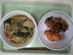 10/2 和風カレーうどん 野菜ののりあえ とりの天ぷら |